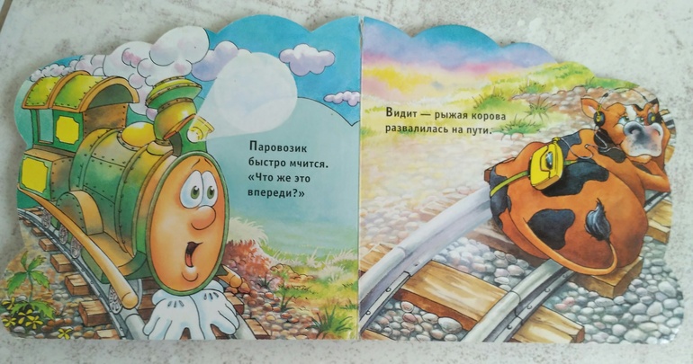 Паровозик Пых" - отличный стишок про Паровозик, на пути которого встретилась корова. Книга 2002 года, досталась нам от знакомых.