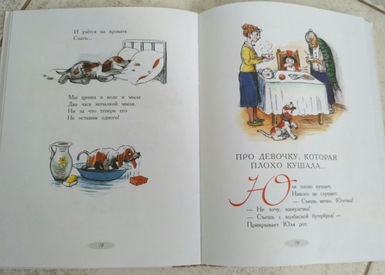 Маршак, первая детская книга в нашем доме, купила перед рождением Ани, читаем некоторые стишки, нравится" Обезьянка ", " Разговор лягушек "," Шалтай Болтай ". Аня любила совсем другие стихотворения из этого сборника.
