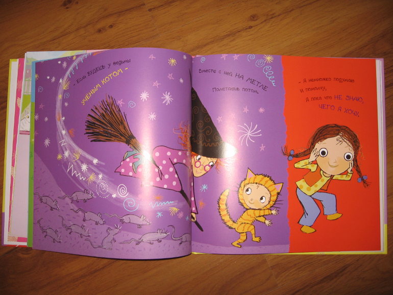 Книжка о том, что интересно, конечно, представлять себя ведьмой, пираткой, принцессой и т.д., но не менее интересно быть и самой собой: погулять в парке. покачаться на качелях и съесть по шарику мороженого.