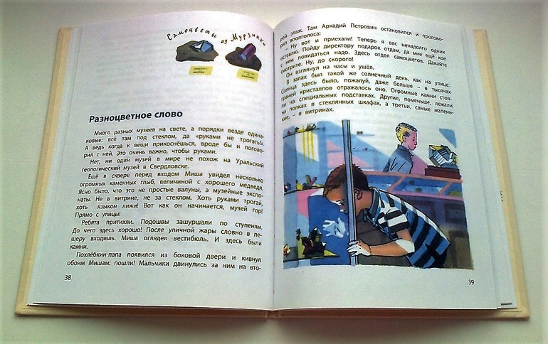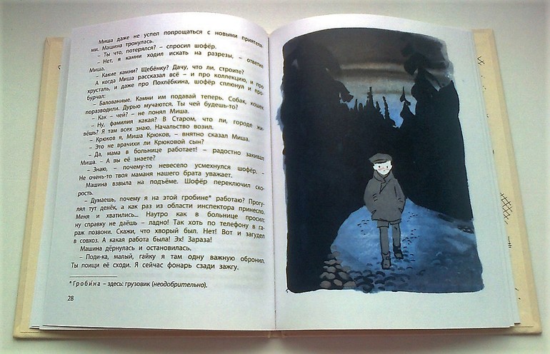 Книга увлекла и меня, ибо я, конечно, метнулась тут же в Интернет смотреть, что такое друза, Мурзинка и, конечно, как выглядят эти камешки, в которых я профан. Как же это красиво! В книжечке есть немного языка горняков: горщик, отвалы, драга, разрезы, занорышы, копи. Внизу по тексту есть сносочки, очень удобно.