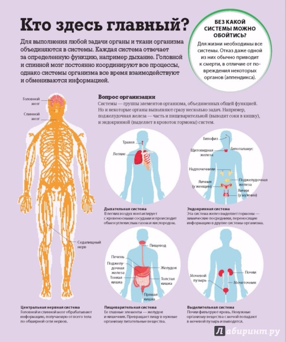 Книга сделана в форме инструкции к телу человека, наполнена подробными схемами и иллюстрациями. В книге рассматриваются все системы организма, кроме того, есть интересные факты о работе той или иной системы. Авторы-составители Вирджиния Смит, Никола Темпл ориентировались на старшеклассников, создали так называемый антиучебник - нескучную, яркую энциклопедию.