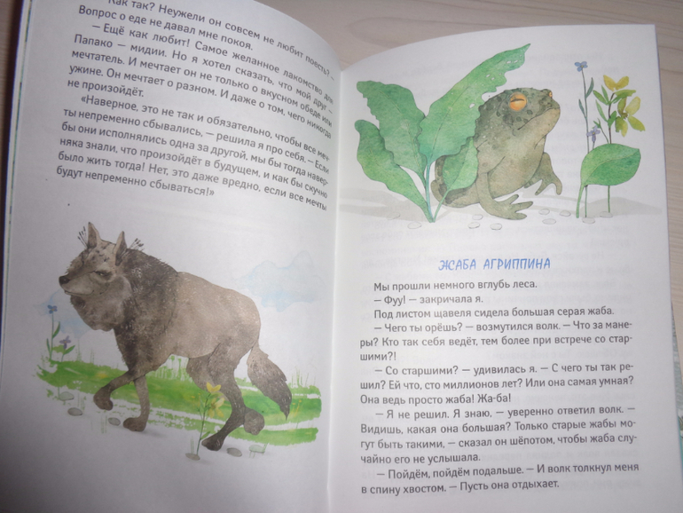 Ну и напоследок Совиный волк Книга оказалась неожиданного маленького размера (я думала, она побольше). Страницы офсет, слегка просвечивают, но не страшно. Блоки прошиты и проклеены, каптала нет. Иллюстрации то на каждом развороте, то 2-3 разворота просто текста. Книга выпущена при поддержке Автономной некоммерческой организации "Центр "Амурский тигр"" и Русского географического общества.