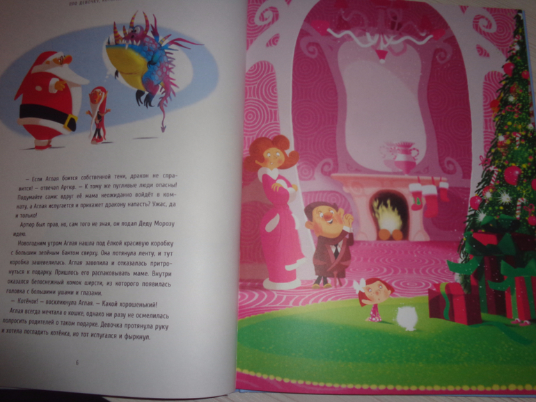 Твердая матовая обложка, страницы плотные мелованные, иллюстрации не на каждом развороте, но очень яркие, красочные! Смущают рамочки вокруг текста - уж слишком они вычурные, но стерплю)