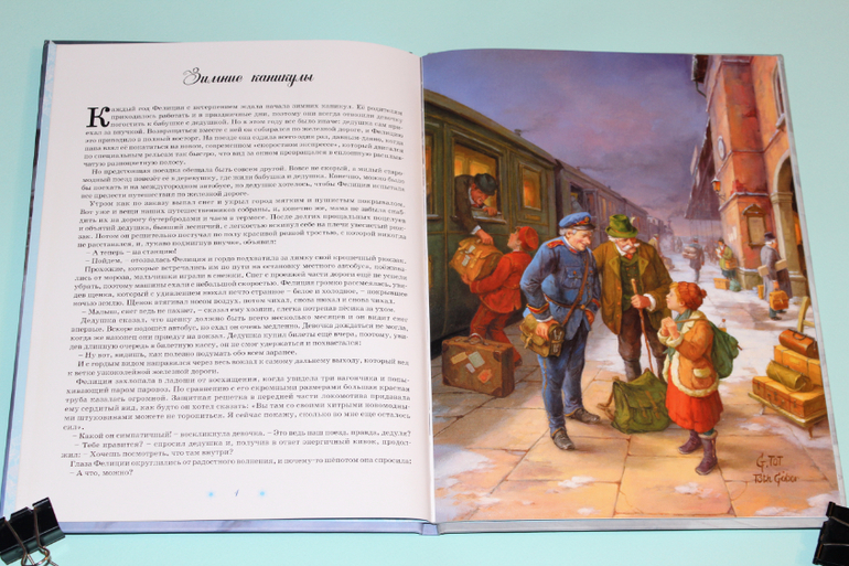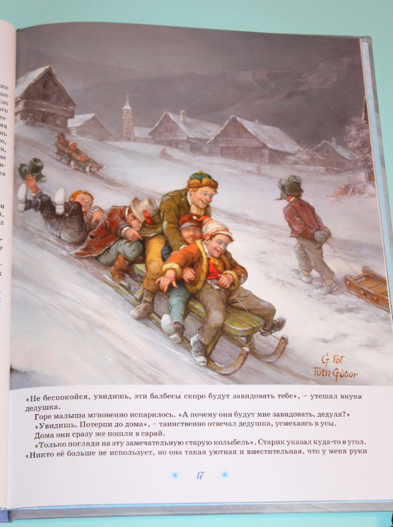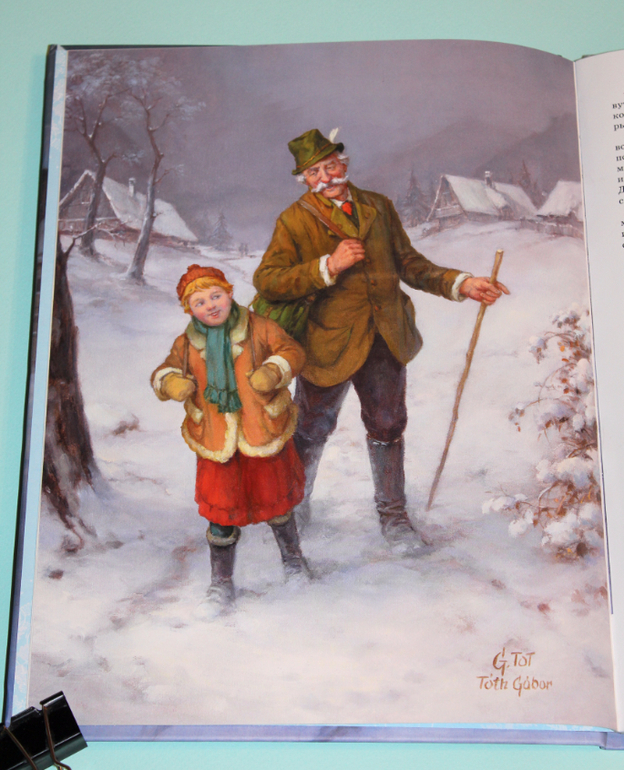 Дочка слушала с большим удовольствием. Хоть на улице осень, дождь и листопад, но во время чтения мы погружались в зимнюю сказку. Истории и иллюстрации просто созданы друг для друга! Художник Аттила Наги создал настоящие шедевры к каждой истории! Каждая мелочь прорисована досконально, каждый рисунок пропитан теплотой, красотой и праздником.