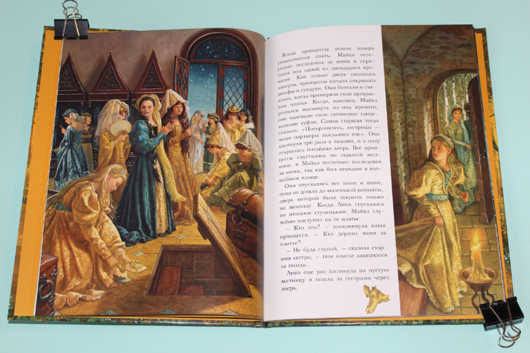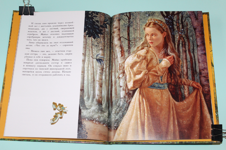 Эта книга - настоящее сокровище для маленьких девочек! В одной сказке сразу двенадцать принцесс! Каждый раз, когда мы с дочкой читаем эту сказку, она снова и снова пересчитывает принцесс, все ли на месте, вдруг одна из них сбежит с прекрасным принцем)). Но к нашему счастью, все красавицы на месте, и мы с удовольствием любуемся ими.