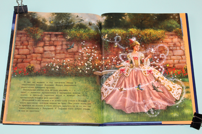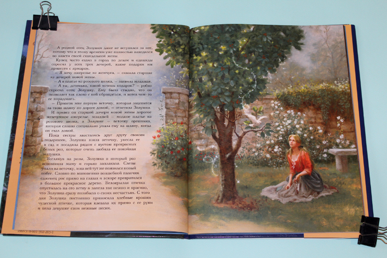 В этой сказке Золушка попросила у отца привезти ей не золото-бриллианты, а веточку, которая зацепится за него во врем пути. Из веточки за пару минут выросло прекрасное дерево, а на его ветви прилетела птичка, которую стала подкармливать Золушка. Эта птичка помогла выбрать из золы все зернышки, брошенные туда специально злой мачехой, но как нам известно, все старания были напрасны. Хорошо когда на помощь приходит фея крестная и может одним взмахом волшебной палочки превратить замарашку в принцессу. Шикарные наряды, нарисованные Руф сандерсон, рассматривать одно удовольствие! Так и хочется закружится в вальсе с прекрасным принцем!))