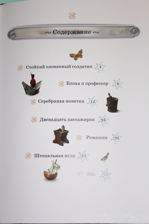Название соответствует содержанию. За исключением сказки "Стойкий оловянный солдатик", все остальные я прочла впервые. Поэтому книгу могу смело рекомендовать, вряд ли она станет дублем, скорее дополнит уже имеющиеся сказки Андерсена на ваших книжных полочках.