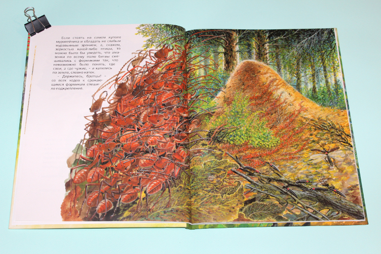 Оказывается дятлы достают насекомых не клювом, а языком! Муравьи общаются с помощью усиков, а ещё у них есть свои стада коров - тля! Они эти стада пасут и доят! Просто невероятно! Хитрая медведка делает подкоп под муравейник, и пока стража спокойно охраняет муравейник снаружи, медведка хозяйничает в муравейнике изнутри. много опасностей подстерегает муравьёв, тяжёлая у них доля, но они с детства приучены к трудностям и готовы в любой момент пожертвовать своей жизнью ради спасения своего муравейника, куколок и королевы.