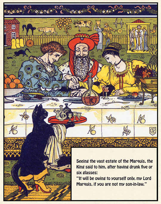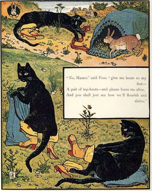 Дорогие читатели! Перед вами сказка Шарля Перро "Кот в сапогах", иллюстрации к которой выполнил замечательный английский художник Уолтер Крейн (1845-1915). Он проиллюстрировал более 50 книг для детей, став одним из самых популярных художников книги. Крейн считал, что дети предпочитают видеть точные линии, чётко обозначенные фигуры и формы, яркие насыщенные цвета. Своими иллюстрациями он стремился поражать воображение детей. Вместе с художником Эдмундом Эвансом он создал одну из первых в истории цветных детских книг. Графический стиль Крейна отражал его интерес к искусству Ренессанса, что проявилось, в первую очередь, в изображении костюмов и интерьеров. Он также испытал значительное влияние японской гравюры с её линеарностью и локальным цветовым решением, что, по мнению художника, абсолютно соответствовало особенностям детского восприятия.