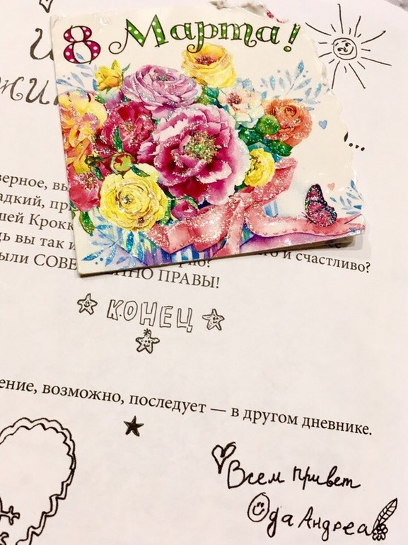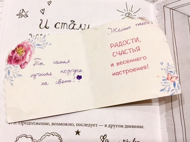 Я, конечно, не целевая аудитория этой книжки, но уверена, что девочкам она будет очень близка. И вот тому доказательство)))) в моем библиотечном экземпляре оказалась, эта крохотная открытка ))) очень мило, детский почерк и всё такое))