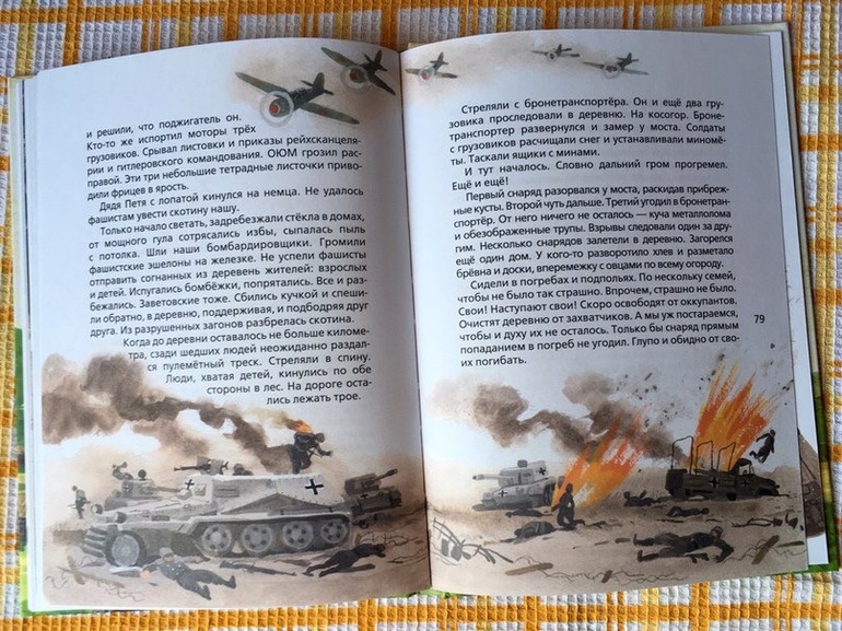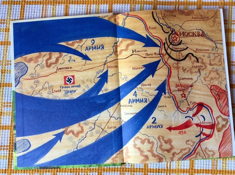 Иллюстрации цветные их очень много, на каждой странице, плотный офсет, книжка стандартных размеров, на форзацах- карта боевых действий.