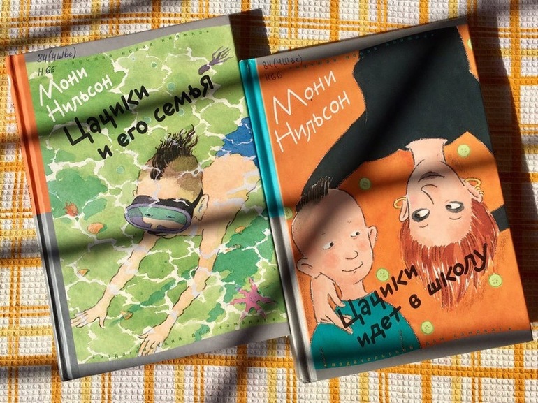 В первой книге Цацики 7 лет и он идёт в школу:) Цацики живет вместе с Мамашей сумасбродной и очень "современной". Они легко делятся секретами др. с другом. Общаются как лучшие друзья:) ещё с ними живет квартирант Йоран, которого мальчик очень любит. В школе Цацики находит лучшего друга, первую любовь. Все книги с легким юмором.