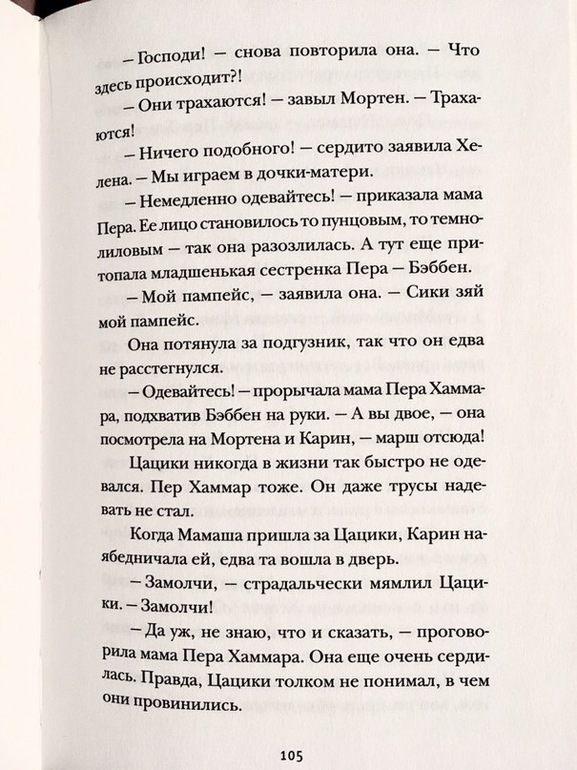 В 1ой книге есть эпизод об игре в дочки/матери. Как девочки и мальчики "женятся" и "целуются". Выложу этот эпизод