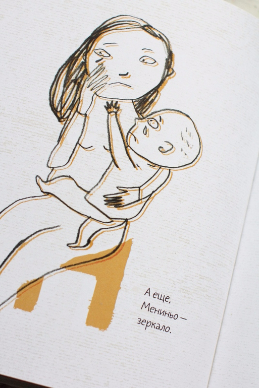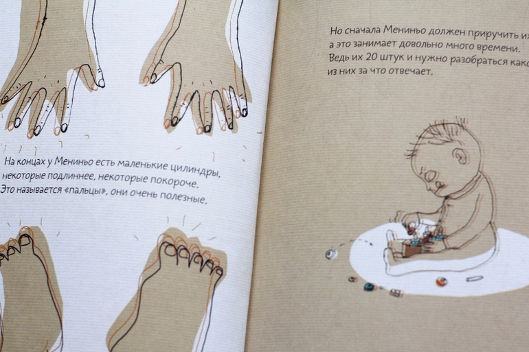 Это книга о детях. Но необычная:) Этакая инструкция по эксплуатации младенца, комическая и печальная одновременно. Наверное, именно из-за этого контраста смешные странички так смешат, а от серьёзных начинает щипать в носу.