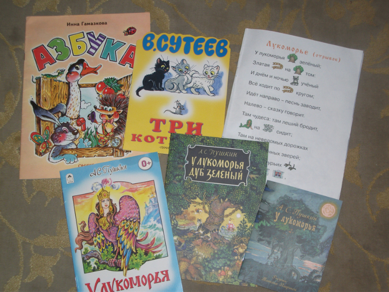 Самостоятельное чтение. Лукоморье читала по книжке с подсказками, почти наизусть знает.Когда спросила, какая тебе книга больше нравится, указала на книгу издательства "Алтей"))