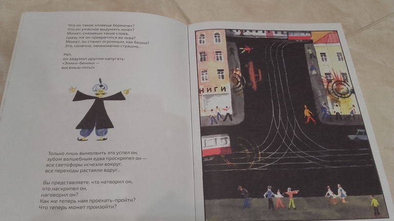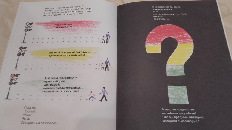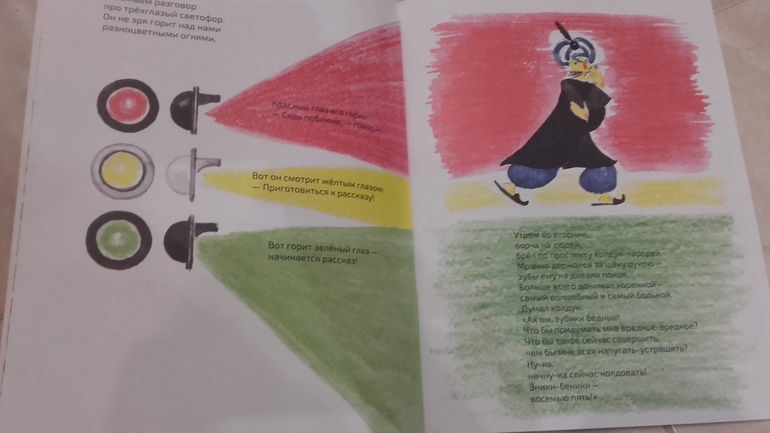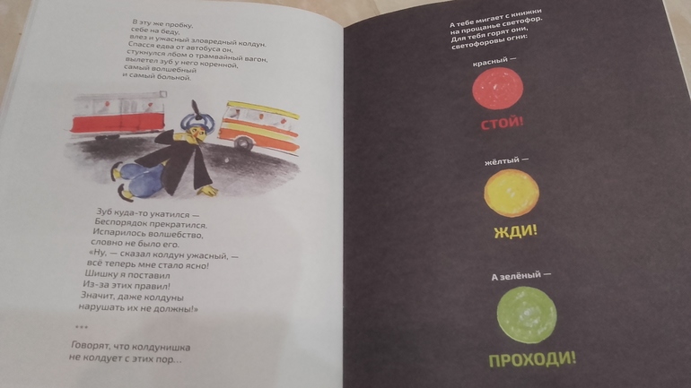 Мне книга понравилась, интересная, как колдун убрал светофоры все от вредности, после этого расказывается как появился светофор, что раньше он был не нужен, но потом с появлением машин и большого движения стал просто необходим. После хаоса и колдун понял, что без светофора никуда )))
