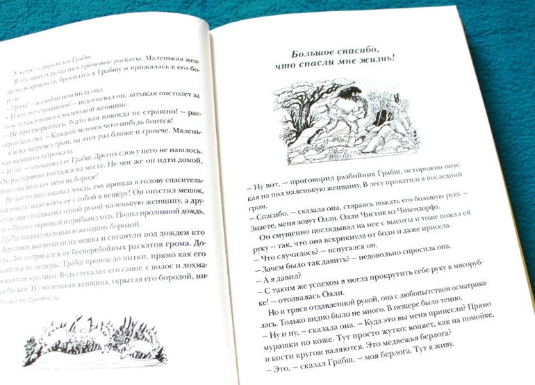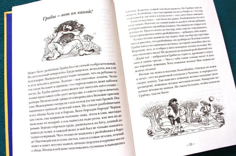 В ней нет навязывания морали или кучи правильных выводов. Я до последней страницы сомневалась, стоит ли давать даже подростку книгу о счастливой жизни разбойника. Зачем, думала я, ребенку читать, как легко разбойничать, как уходить от полиции. Не успокоило меня даже то, что Грабш исправился, стал добропорядочным - ведь ему все сошло с рук. Было, правда, долгое заключение в тюрьме с тяжелым трудом на благо города и очень плохими условиями. Еще страшнее стала в этот момент жизнь семьи разбойника. Но это лишь один эпизод и автор не слишком ярко нарисовал картинку ответственности за разбой.