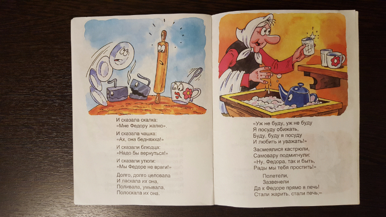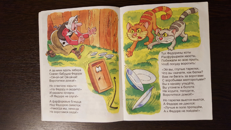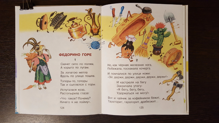 Странички тонковаты в Федорином горе, но содержание от этого ведь не страдает. Рисунки нам очень нравятся. Знаем многие строчки наизусть.
