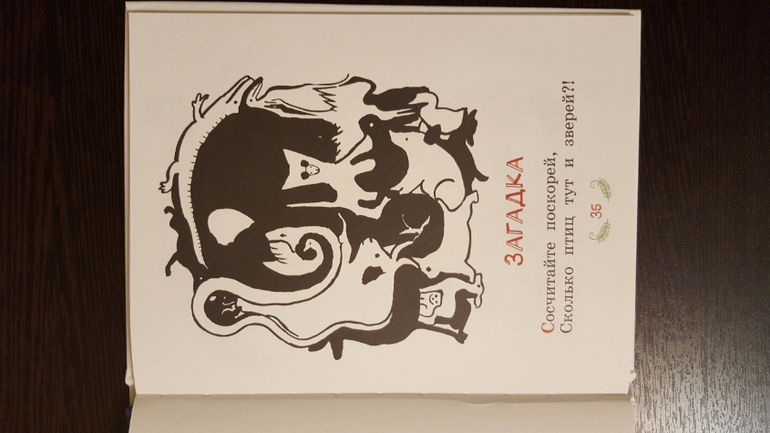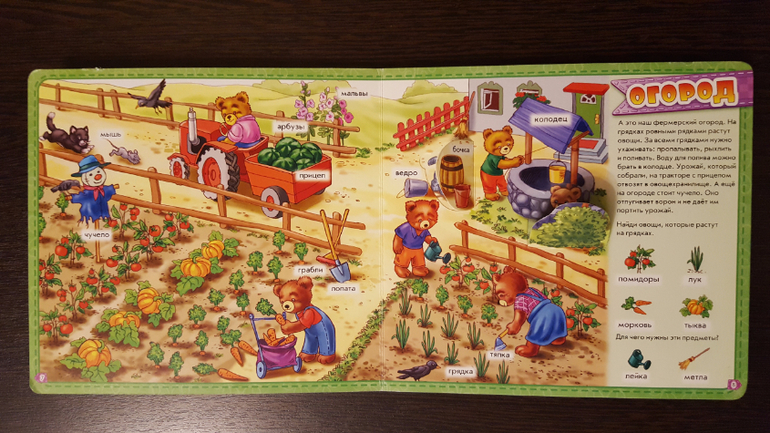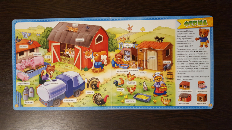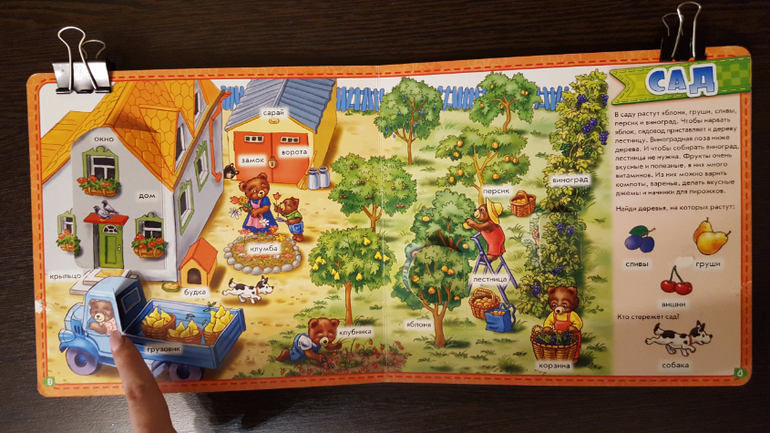 Здесь ищем животных. Сама переворачивает книгу и ищет.