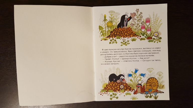Долго думала на счет Кротика. Хотела толстенький сборник, но цена на него у нас кусачая. Думаю, а вдруг не пойдет он у нас, хотя ведь столько восторженных отзывов. И приобрела в местном магазине одну историю про Кротика. И правильно, не очень он Алисе нравится. Вот не знаю или история не та, которая цепляет всех детей, или просто не наше это чтение.