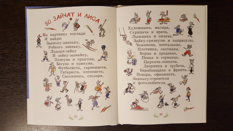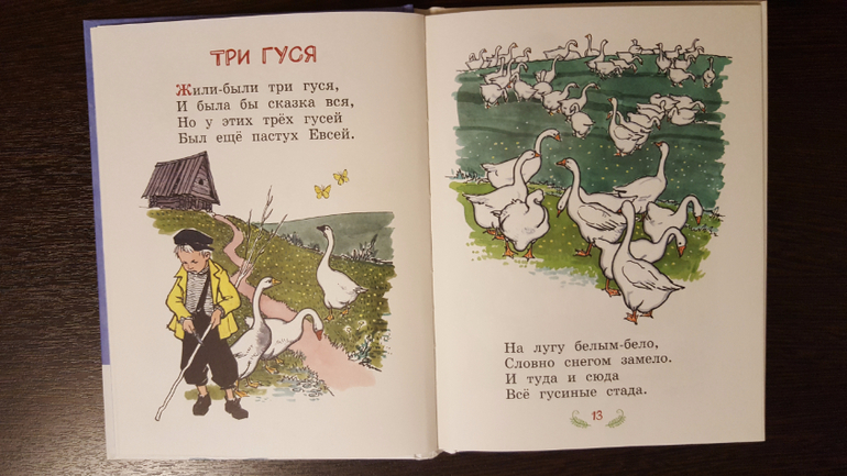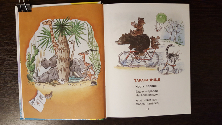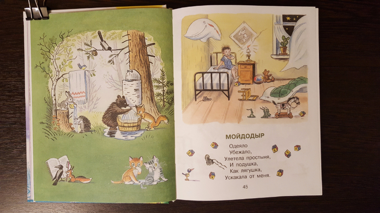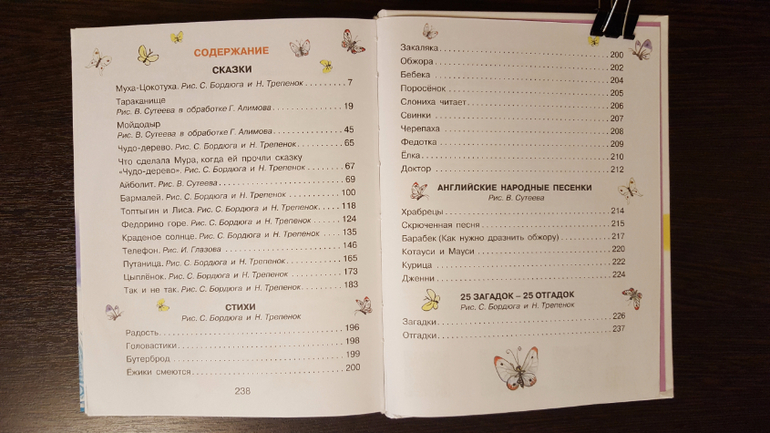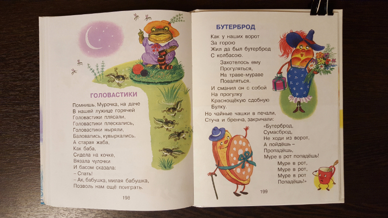 Чуковский - тоже хит! В целом этот сборник меня устраивает и содержанием и иллюстрациями. Но, если бы я брала сейчас, купила бы всё по отдельности, тонкими книгами. Так удобней читать. Но дубли брать кошелек не позволяет. И, кстати, все книги мы читаем от корки до корки. Все подряд, ничего не пропускаем. Пока дочь не привередлива в этом плане, слушает все подряд. Но вот "Федорино горе" не могу здесь читать. Рисунки не нравятся. И к тому же они не отражают всего, о чем написано по тексту. Есть у нас тонкая книжка, уже до дыр зачитана.