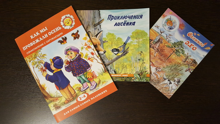 Это наше осеннее чтение. "Осеннее эхо" для дочери еще рано, мама почитала вслух в свое удовольствие. "Приключения лисенка" слушала, без особых впечатлений, думаю тоже рановато. "Как мы провожали осень" мне очень понравилась. Познавательно, понятно малышам, есть вопросы. Читали несколько раз. Также как дети собирали листья, делали поделки. Думаю, стоит ли брать другие из этой серии.