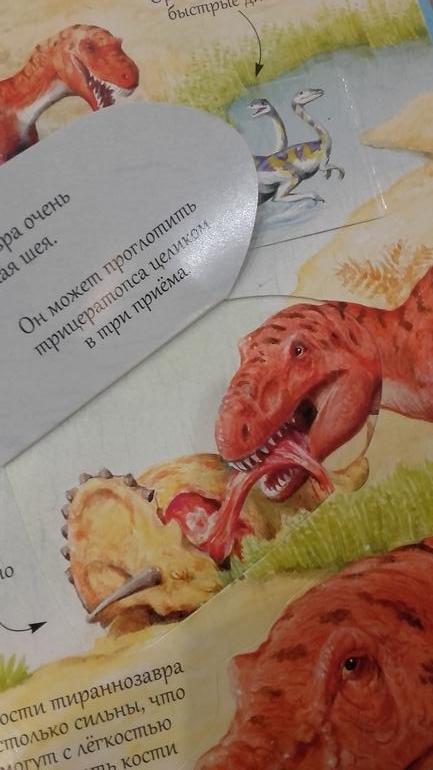 Не обошлось без динозавров, мы без них никуда))) Открой тайны всем известная серия, ребенку очень нравится. А вот вторую надо читать с планшетом, на каждом листе оживает динозавр, которого можно покормить, узнать как он пусть и где живет. Отличная книга для любителей динозавров и для знакомства с ними.