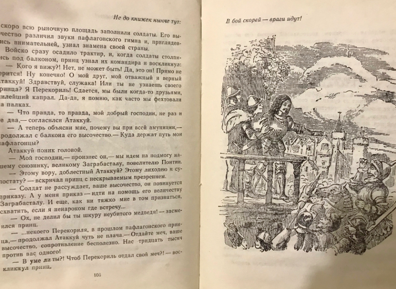Имя английского писателя Уильяма Теккерей известно у нас в основном по блестящему произведению "Ярмарка тщеславия", сама люблю и книгу, и экранизации. А мне в детстве посчастливилось познакомиться с чудесной ироничной рождественской сказкой. Сказкой, безусловно сатиристической, но с таким лихим сюжетом, что оторваться не возможно. Лет в 10 на одном дыхании прочла я про все приключения Бетсинды( пока не станет известно что она не Бетсинда, а самая настоящая принцесса Розальба!!!!) принцев Перекороля и Обалду, графини Спускунет и короля Заграбастала)) Ничего подобного до этого я не читала, мне книга казалась очень взрослой, есть в ней все: самодуры, глупцы, бедная сиротка, фея-крестная , алчные старушки и вредные задаваки И ЛЮБОВЬ) с интригами и тайнами!