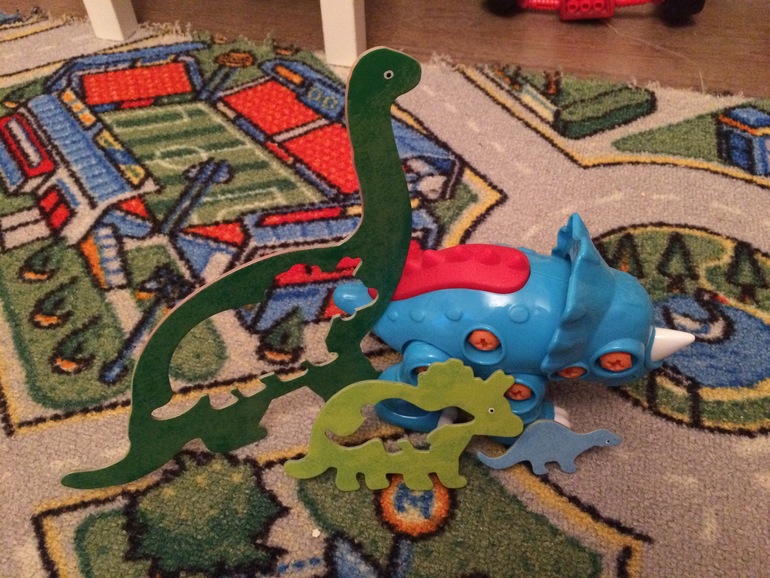 А ещё мы любим динозавров! Книги, машинки, пазлы, раскраски, трафареты... везде они!