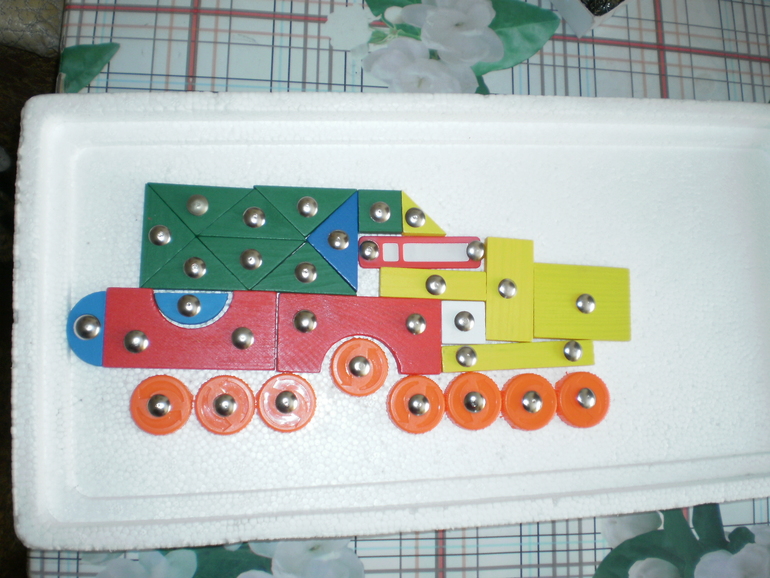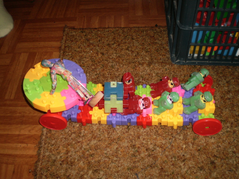 А вот это сложное сооружение - это больница. Злата несколько дней играла после прочтения Любопытного Джорджа, который туда попал.