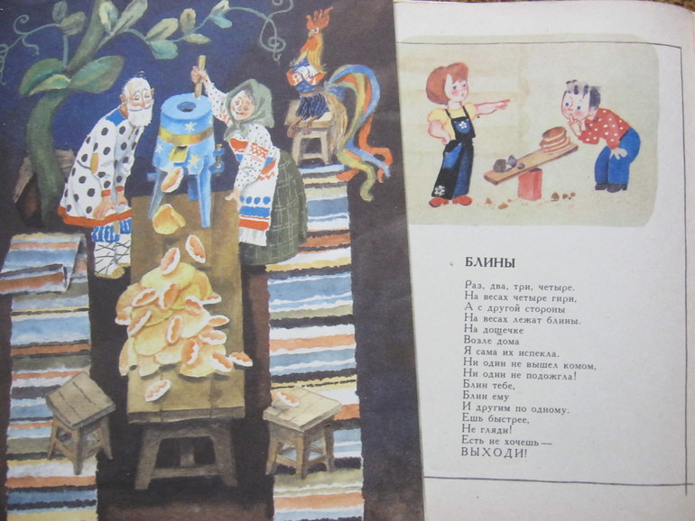 Блины из дырявого клеенчатого круга давным-давно были нарезаны к пасхе. Но с тех пор всякий раз, как только они упоминались в какой-нибудь книжке, обязательно вытаскивались и пеклись.