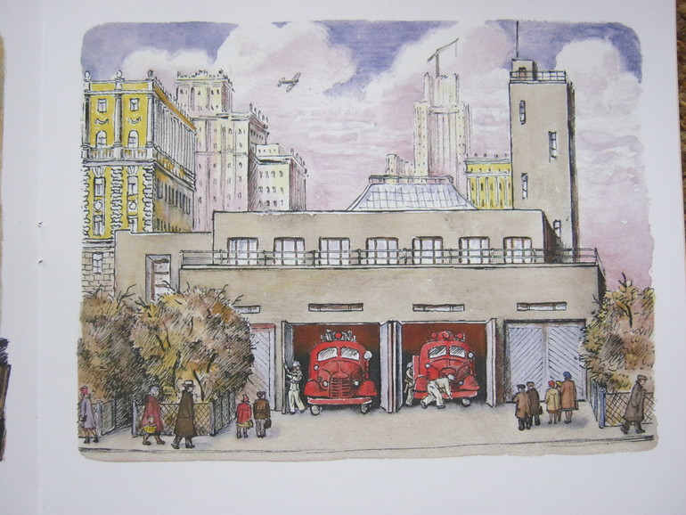Сюда, к этой фотографии с пожарными машинами, очень просились развороты из книги Маршака "Пожар"