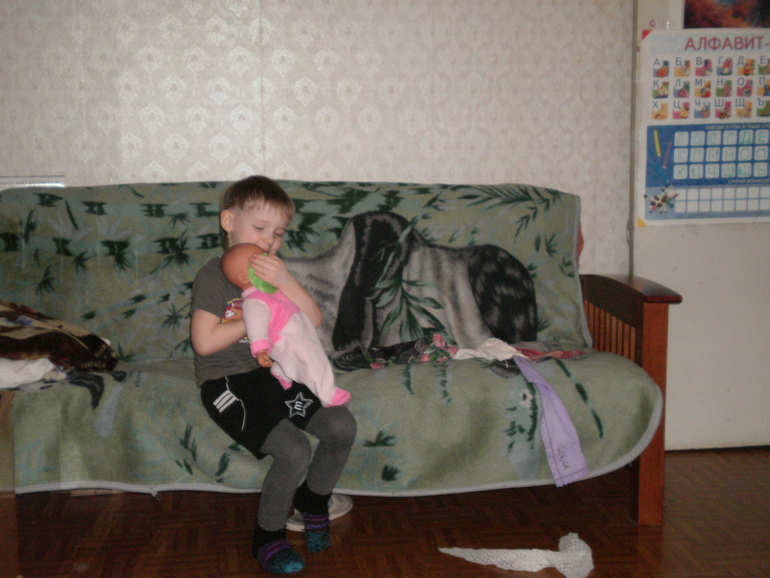 У Вовы тогда родился младший брат, и он очень "профессионально" и бережно обращался с куклами. Многим девчонкам бы позавидовать!