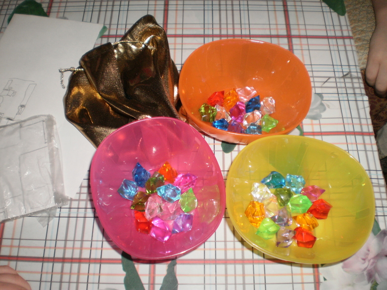 Вместо мармеладок у нас берутся доминошки, а вместо конфет или клюквы - камешки.