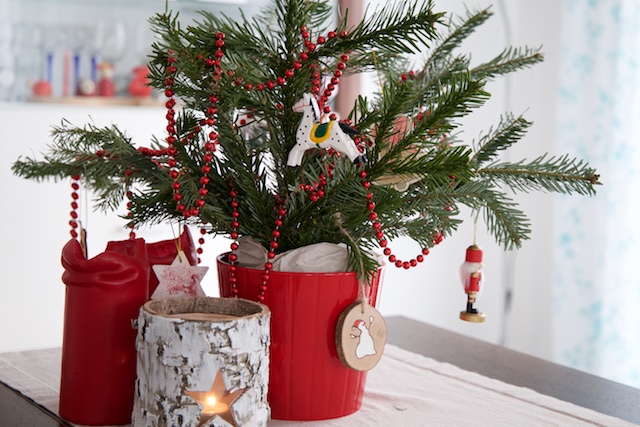 Елку в этом году ставить не будем, потому что Рождество и Новый год проведем в России, там нарядим. Но без еловых веточек, конечно, не обошлись.