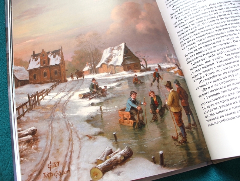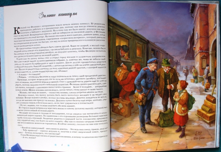 Книга очень красивая. Возраст ее читателя любой. Шрифт мелковат. Полностраничные иллюстрации на каждом развороте.