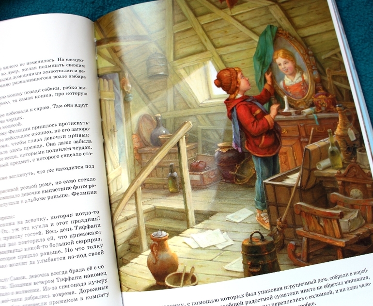 В книге 7 сказок, каждая индивидуальна, но они связаны одной девочкой Фелицией - это как сказки «1001 ночь». Фелиция каждый вечер слушает истории, которые рассказывают ей старые вещи на чердаке. Такой чердак - моя мечта. Там хранится старинная мебель и разные предметы быта прошлого. Что-то даже непонятно как использовалось раньше - но достаточно просто спросить и загадочный предмет сам поведает свою тайну. В доме всегда жили дети и поэтому все истории так или иначе с ними связаны, связаны с детскими играми и озорством, с детскими мечтами и восторгами.