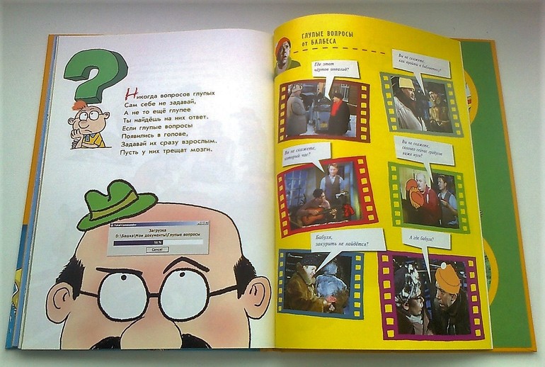 В книге, конечно, зацепило оформление. Мне Воронцов очень нравится, и Даше такой тип рисунков очень близок. С юмором! И воообще оформление интересное, что-то только взрослые поймут в контексте "культурных скреп" вроде фильма о Шурике (стихотворение про "Глупые вопросы" и вопросы вроде "Как пройти до библиотеки?" в ночь ограбления ))) плакаты, лабиринты, коллажи. Даша вчера сама книгу листала, захожу в комнату - "Мама, а я нашла, кому досталась тарелка с цветочками!" (Лабиринт).