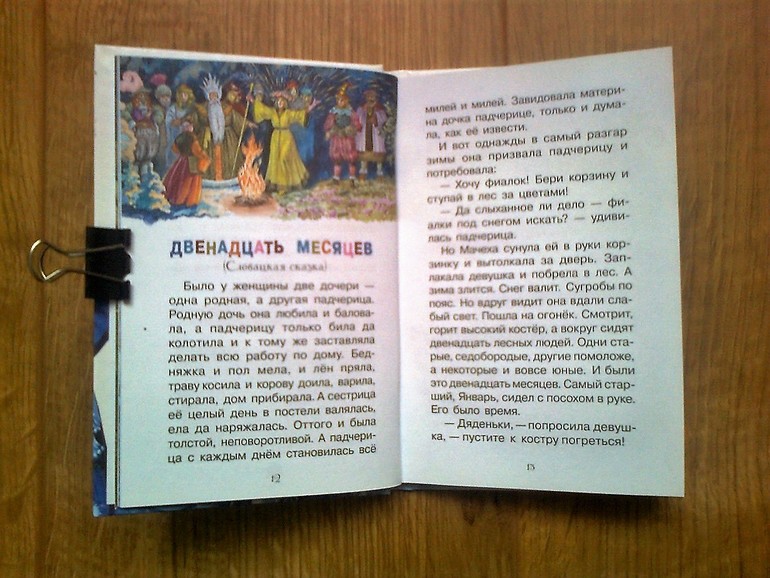А вот эта книжулька интересная. Новая серия от "Стрекозы" - такие миньончики в твёрдой обложке. Здесь четыре сказки: "Морозко", "Мороз Иванович", "Зимняя сказка" и "Двенадцать месяцев". Купила из-за последней сказки. Что-то мне подсказало, что это будет не Маршак, а обычная сказка (пьесы мне трудно было всегда читать, так что Маршака будем смотреть в театре и в виде мультфильма). Так и получилось. Словацкий вриант сказки, когда мачеха с дочкой сначала фиалок захотели, потом свежих ягод, а потом и золотых яблочек. Кончилось это все для них плохо, как вы понимаете. Замёрзли они в лесу, когда самии побежали в братьям-месяцам.