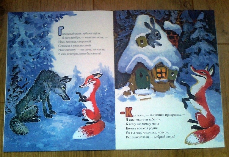 А так "Лиса" - это смешная история о том,как лиса зимой в гости просилась, да звери не дураки ) А к собаке лисичка сама в гости не захотела пойти, тут же повод придумала, чтобы отказаться )))