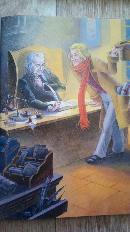 Я себе Скруджа иначе представляла, это совсем не тот мрачный тип. Возможно, Митрофанову не очень удаются отрицательные персонажи, а может быть художник нарисовал Скруджа таким намеренно, чтобы показать, что и в нем есть хорошее, доброе начало, не знаю...