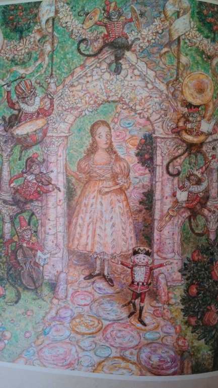 А вот Щелкунчик- это уже выбор осознанный, тк Ломаев- горячо любимый иллюстратор и мой, и старшей дочери. Книга шикарная и тяжелая, иллюстраций много- почти на каждом развороте. Все так и должно быть: