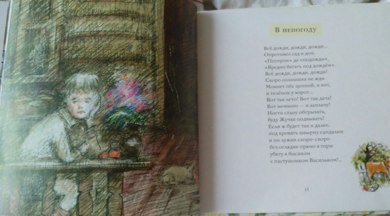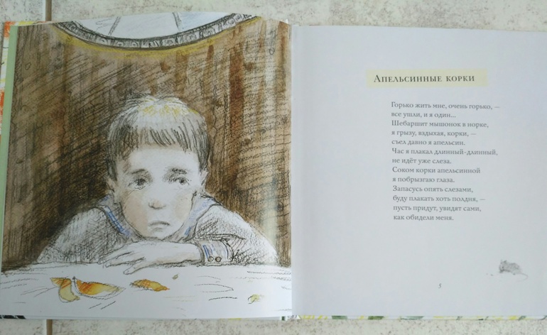 Вообще довольно необычный сборник , как по содержанию так и по оформлению. Думаю подойдёт для детей уже школьного возраста, которые смогут оценить глубину стихов.