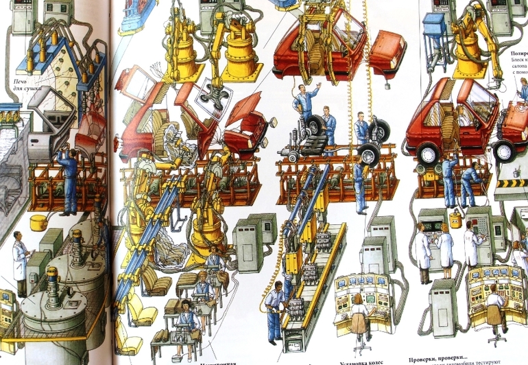 А в этой книге можно детально рассмотреть каждый закуток рыбного траулера, станции лондонского метро или линии по сбору автомобилей на автозаводе. Присмотритесь: танк или корабль не просто разрезан на половинки, а нашинкован вдоль и поперек, чтобы можно было рассмотреть действительно каждый закуток.