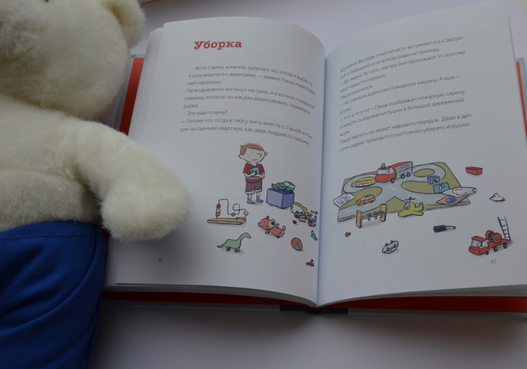 И очень сильно меня удивил образ мамы в этой книге. Мне казалась, она должна быть этакой феей домашнего очага , с умилением взирающей на столь теплые и крепкие отношения папы и сына. А она, как будто, поменялась местами с папой. Бурчит из-за газеты, смотрит новости после долгого трудового дня. Я не хочу сказать, что это плохо, просто для меня это странно. Не похожа она совсем на нас. Чувствуется взгляд автора, другое восприятие реальности, другие основы. Имансипация, одним словом.