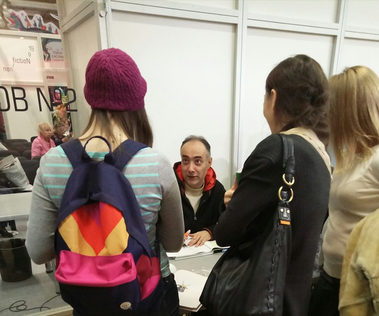 Вернее, были мы с дочкой всего то каких то 6 часов) вообще изначально мы не планировали так долго, но спасибо Леночке, что сказала про автограф сессию Екатерины Соболь, автора наших любимых Дарителей! Мы решили, что не можем это пропустить) Приехали около 12, и некоторое время еще можно было ходить более менее свободно. Я первым делом пошла по списку, к Машинам творения