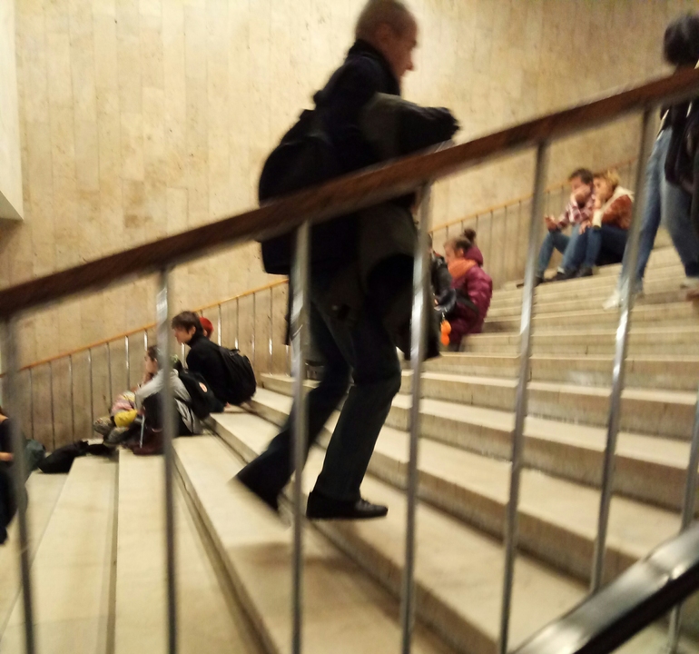 К середине дня народ стал уставать, и устраивался передохнуть) на лестницах