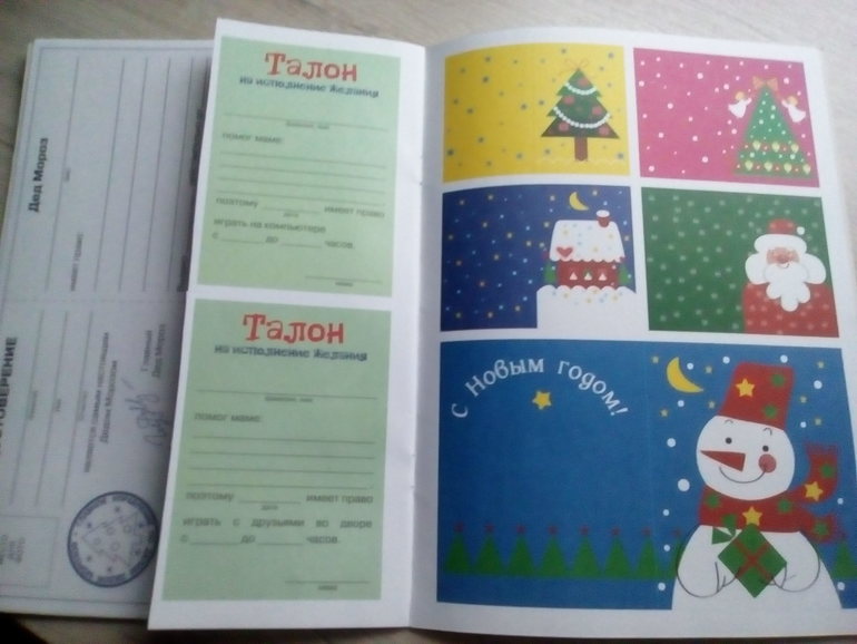 И книжечка "Новогодние приколы" с талонами желаний, которые я использую как подарок для адвента: