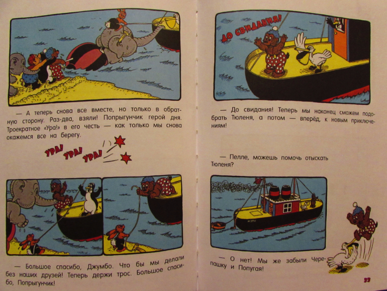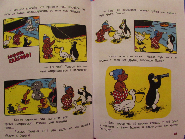 Рисунки в книге настолько подробные, что историю можно понять, даже не читая текста. По картинкам.