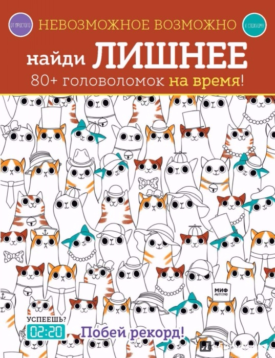 В этой книге вы найдете более 80 головоломок, в которых среди множества изображений нужно отыскать одно лишнее. Решать задачи нужно на время: на самые простые в начале книги дается 20 секунд, а на самые сложные ближе к концу - около 5 минут. Конечно, в книге есть и ответы, но они чаще бывают нужны взрослым. Как правило, дети с такими задачками справляются сами, без подсказки. С этой книгой ваш ребенок забудет о скуке!